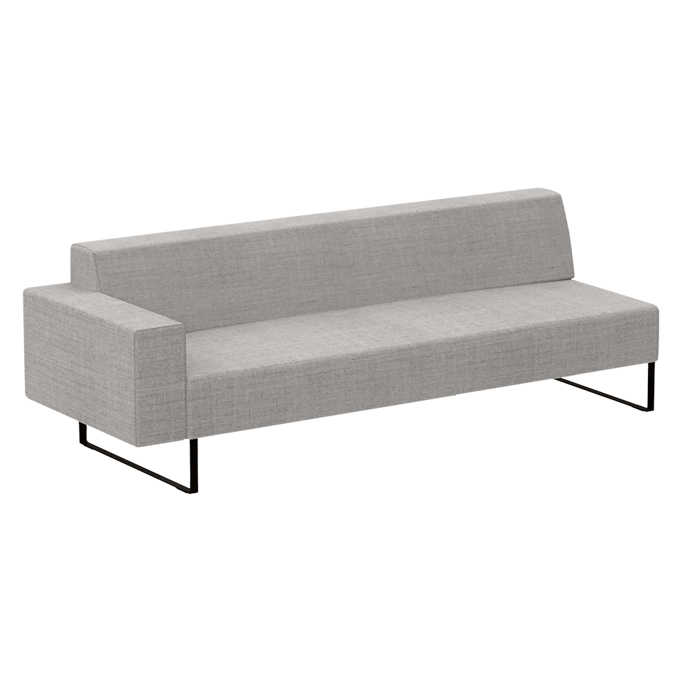 Upholstered sofa W.86.6″ with right arm W.7.9″ and steel plate legs.