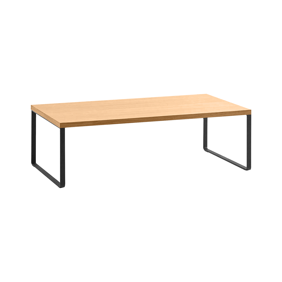 Low table 47.2″ x 31.5″ with wooden top and steel plate legs.