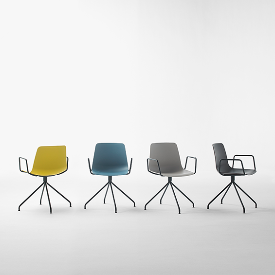 4-spoke swivel armchair with polypropylene seat and back. Greenguard Certified.