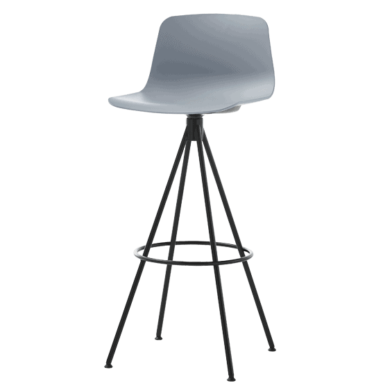 4-spoke swivel barstool with polypropylene seat and back, and steel base. Greenguard Certified.