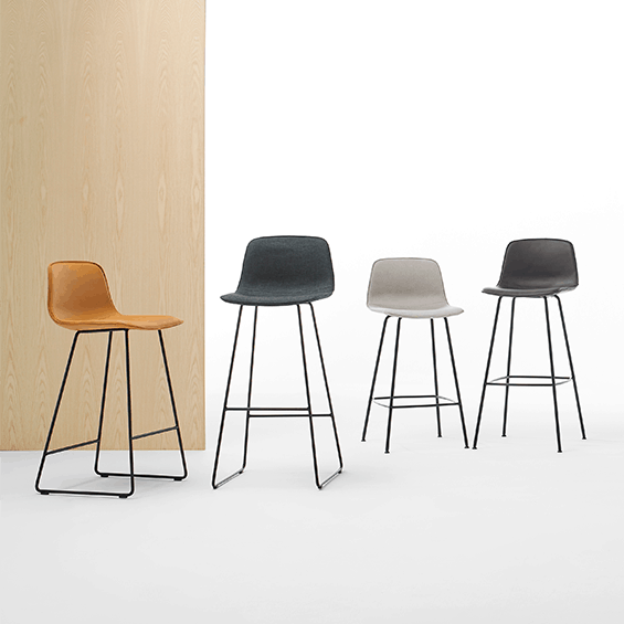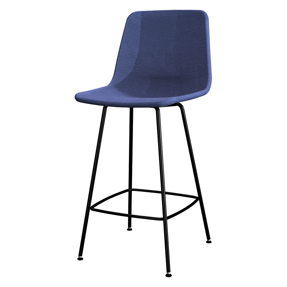Four leg counter stool with upholstered seat and back, and steel base. Greenguard Certified.