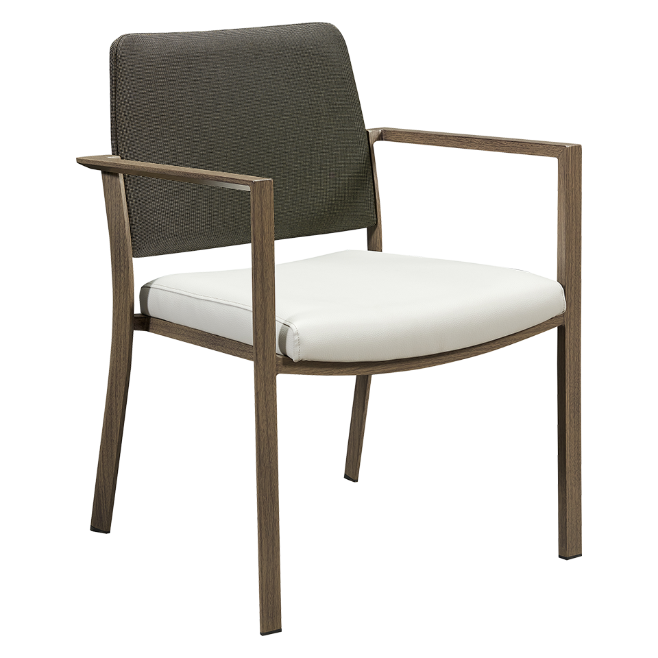 Woodlook armchair with frame manufactured entirely from aluminum but with realistic appearance of wood. Lightweight and highly scratch resistant. Tested to 400 lbs weight load.