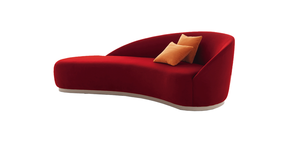 Fully upholstered sofa with right side backrest. Has webbed seat and adjustable glides.