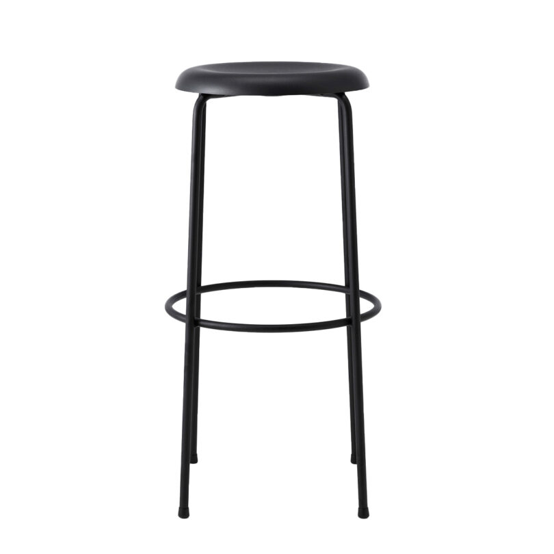 Barstool with seat in white, grey, black, red or orange ABS plastic and a powder coated or chromium plated tubular steel frame.
