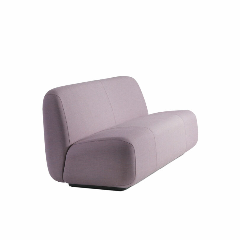 Three-seater sofa with upholstered polyurethane foam padding on a powder coated black metal base with adjustable feet.