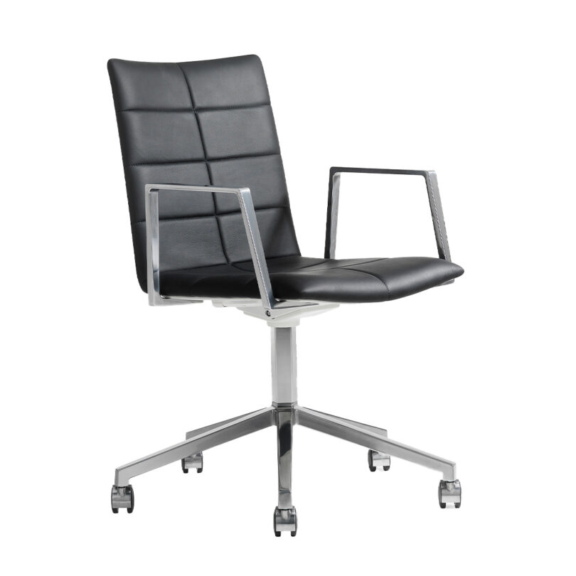 360° swivel medium height back armchair on a powder coated or chromium plated steel base, casters in chrome or black, upholstery with quilting detail. Additional padding available on all the Archal range at no extra cost.