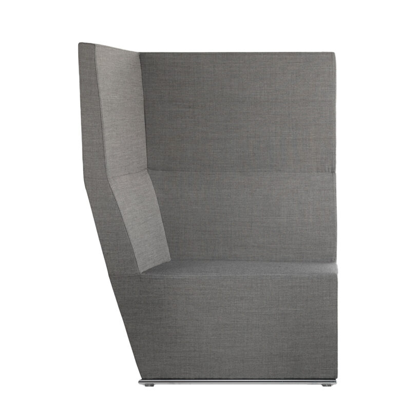Modular sofa unit on powder coated or chromium plated cast aluminium sled base. Right-hand unit with upholstered seat and high rise back, and built-in magnetic linking device.