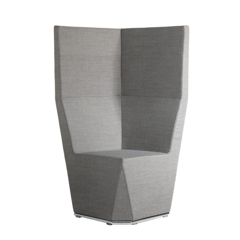 Modular sofa unit on powder coated or chromium plated cast aluminium sled base. Corner unit with upholstered seat and high rise back, and built-in magnetic linking device.