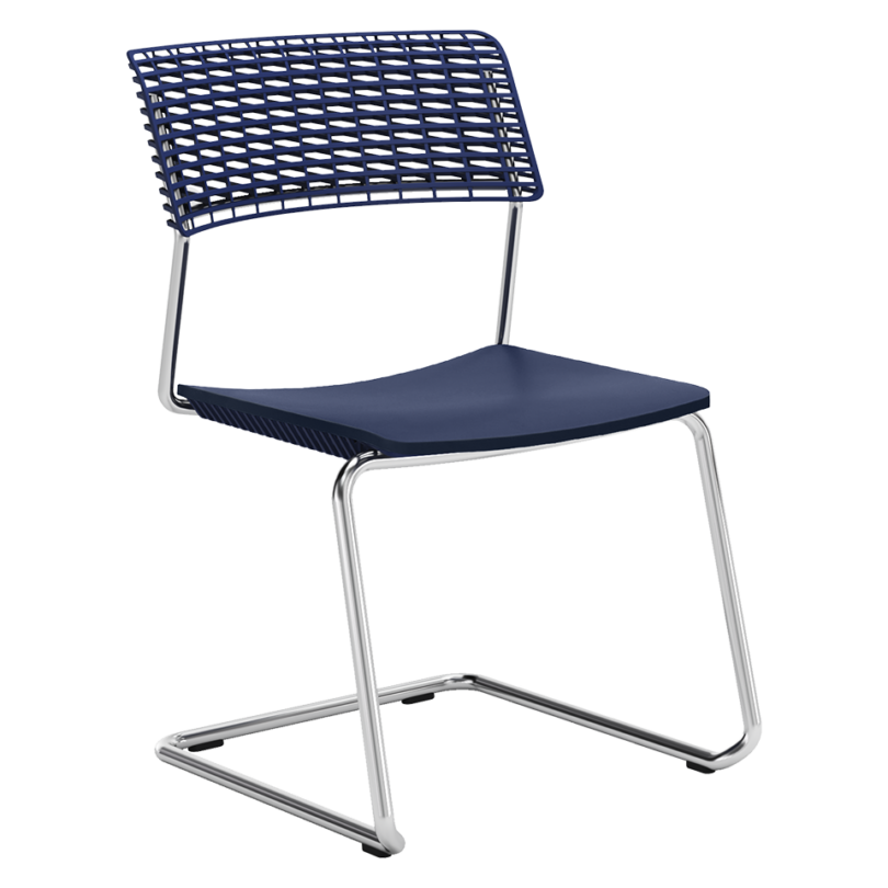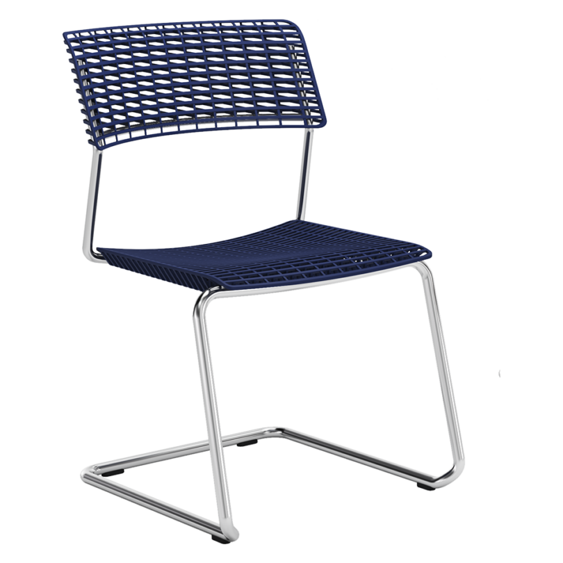 Cantilever sidechair with steel frame and solid polypropylene seat & 3D Polypropylene mesh back. Stackable. MOQ 10pcs