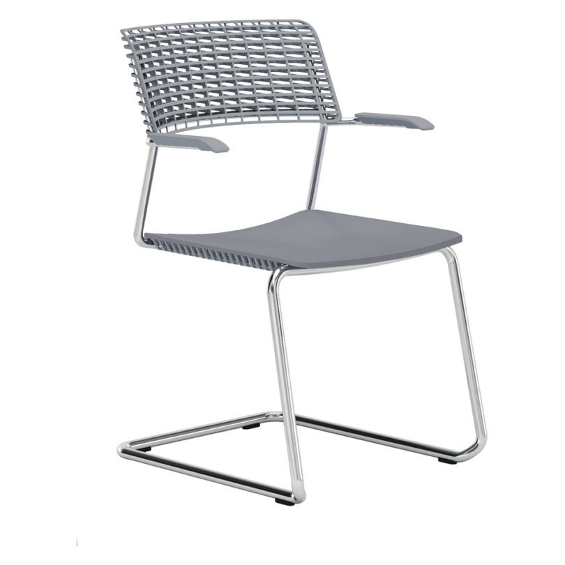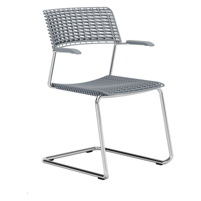 Cantilever armchair with steel frame and 3D polypropylene mesh seat & back. Stackable. MOQ 10pcs