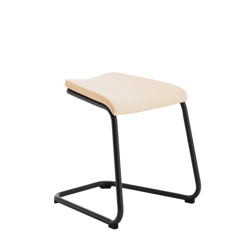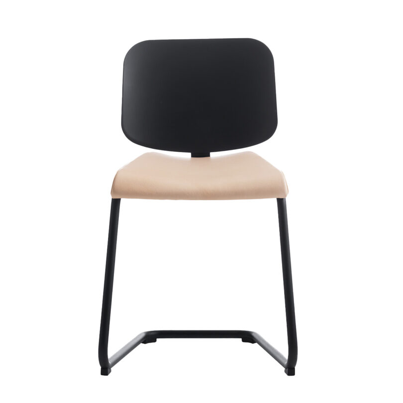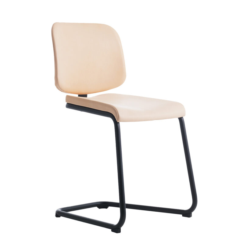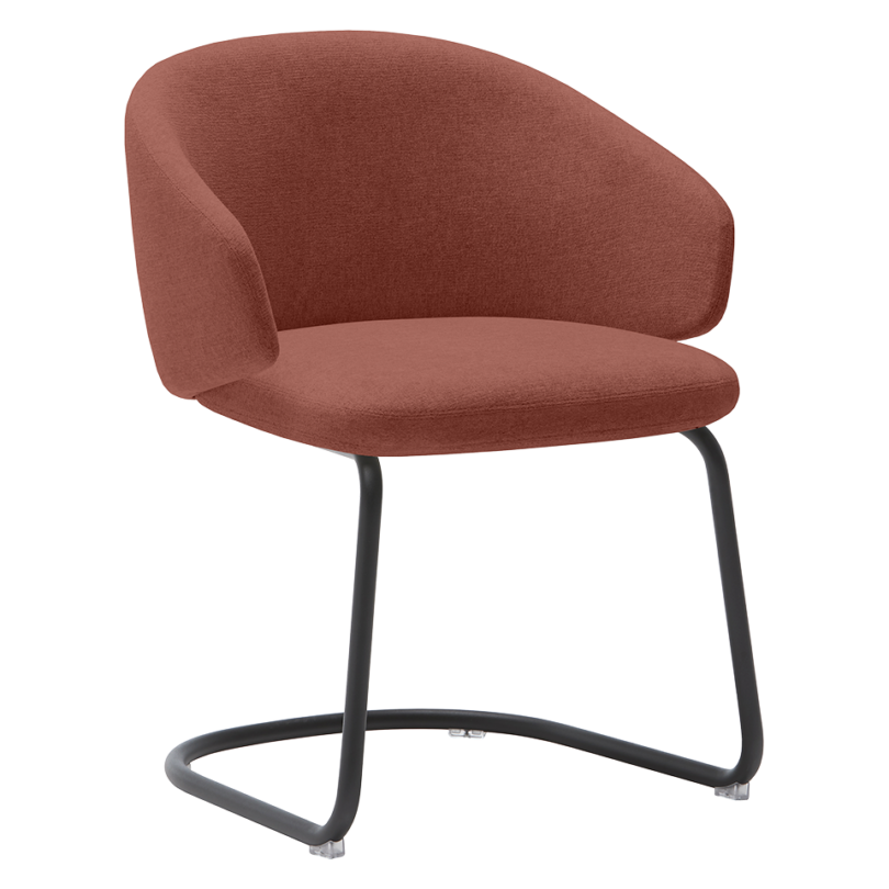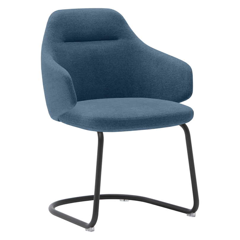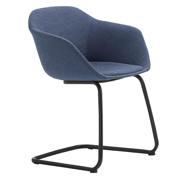Armchair with an upholstered shell on a metal cantilever base. Greenguard Certified.