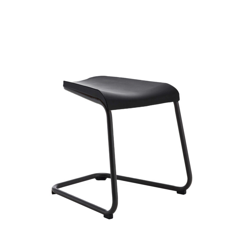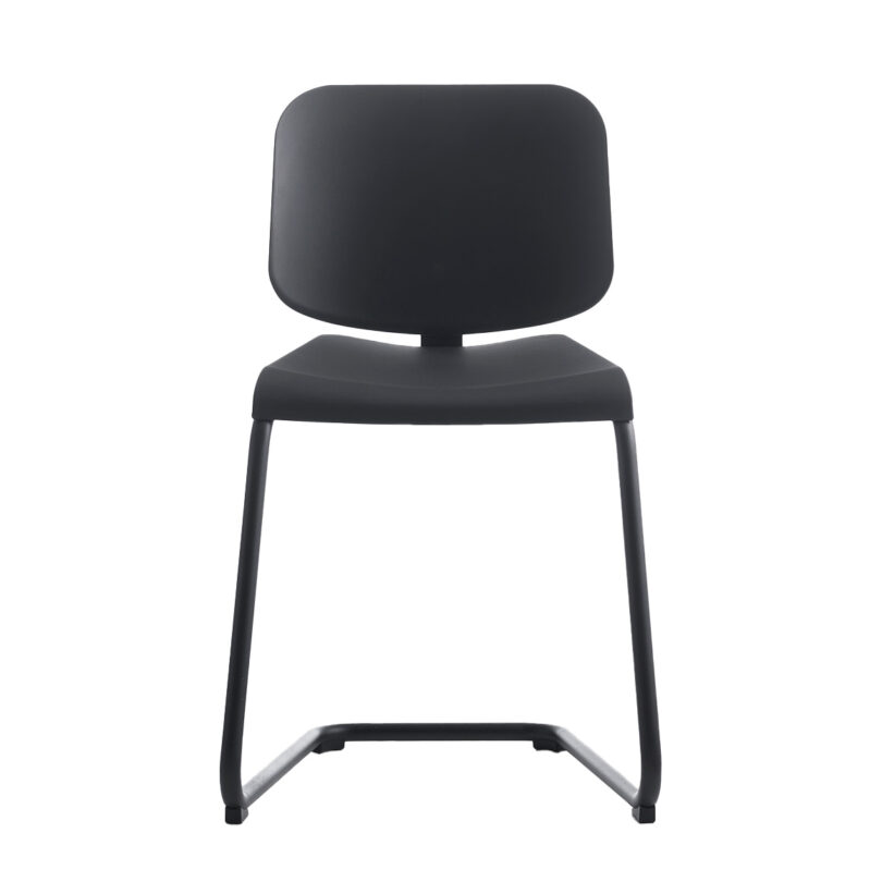 Cantilever chair with frame powder coated or chromium plated steel tubing. Seat and back in high resilient polyurethane foam.
