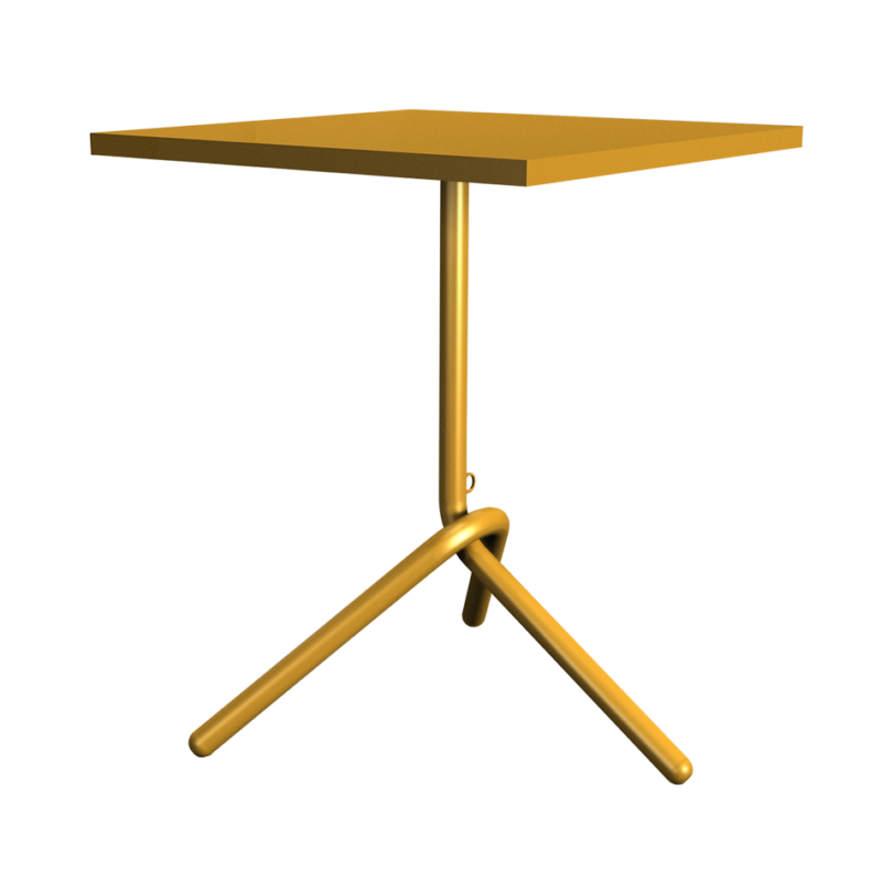 Outdoor dining table with adjustable height and a tabletop measuring 60cm/23.6″ square. This steel folding table is zinc and powder-coated for extra durability.