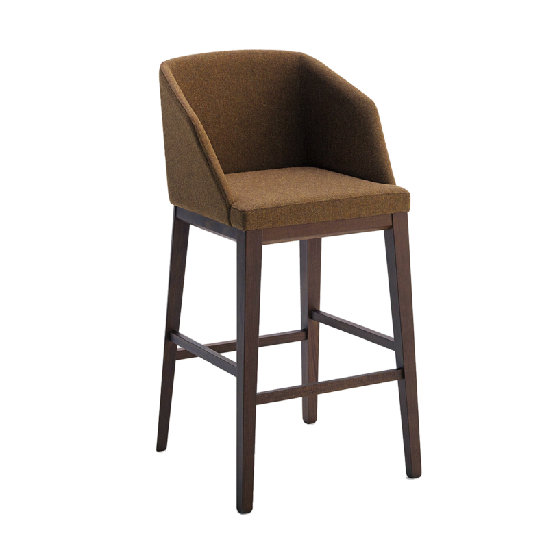Upholstered bar-height stool with solid beech wood frame.