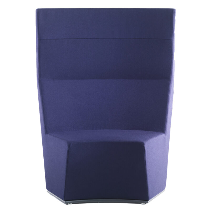 Modular sofa unit on powder coated or chromium plated cast aluminium sled base. Right-hand unit with upholstered seat and high rise back, and built-in magnetic linking device.