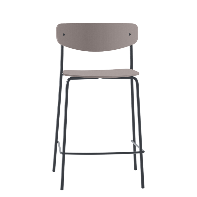 Stackable counterstool with polypropylene back and upholstered seat. Round steel tube 4 leg frame. GREENGUARD Gold Certified.
