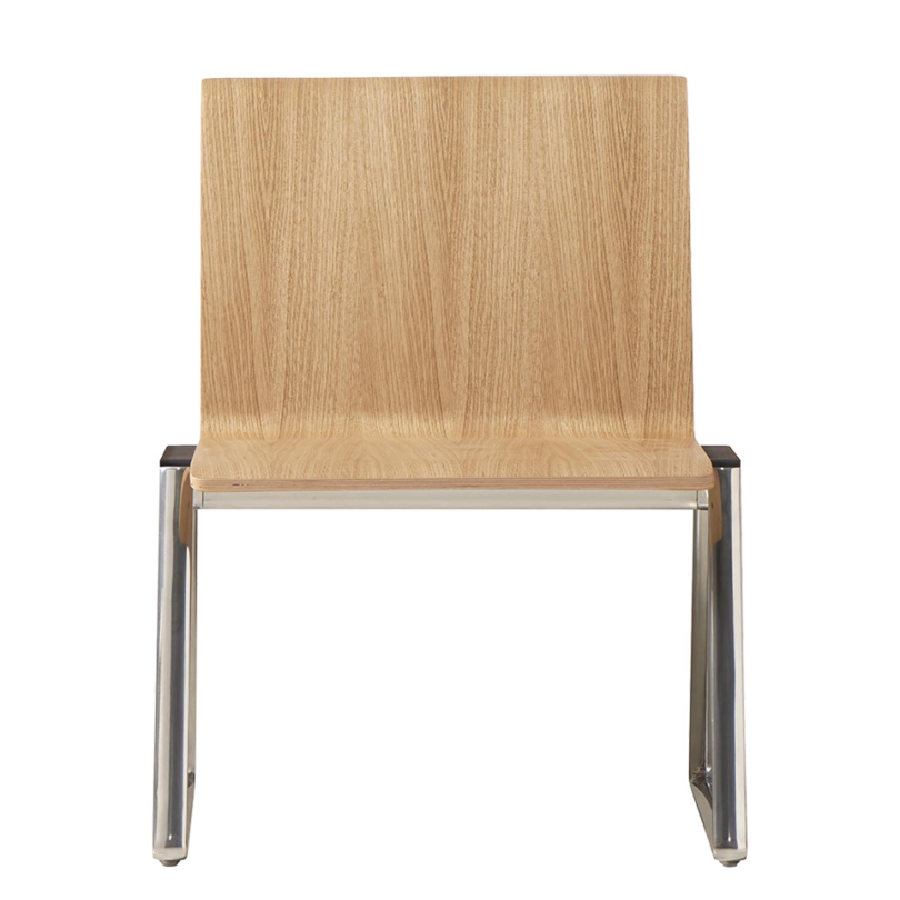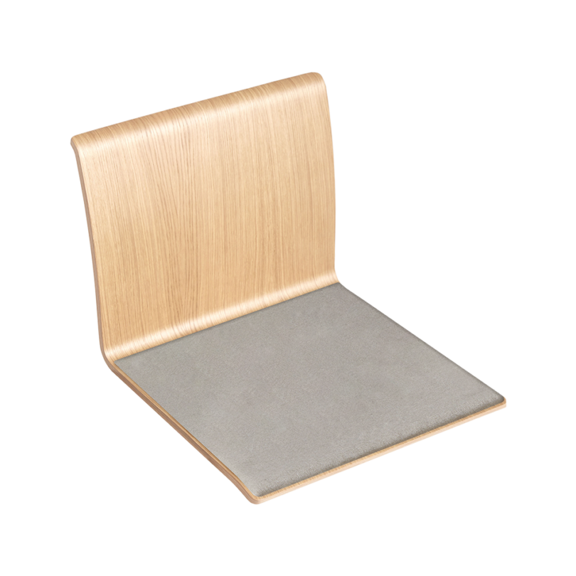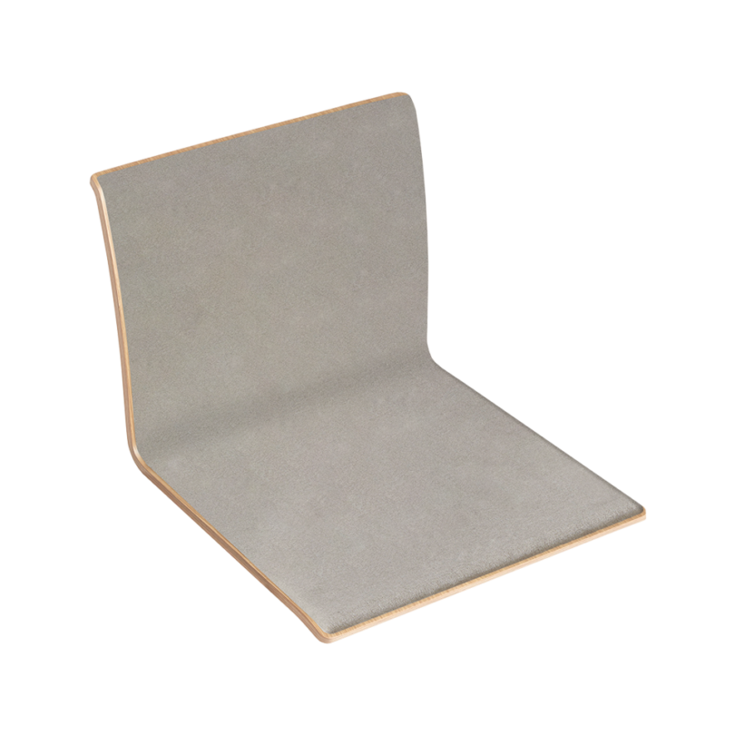 Seat mono-shell for bench made of oak plywood with upholstered seatpad. Greenguard Certified.