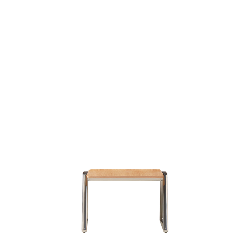 Upholstered single seat bench on frame with sled base. Greenguard Certified.
