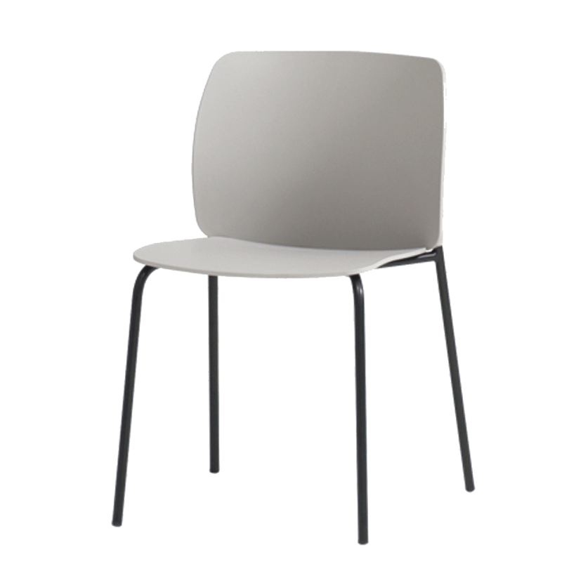 Stackable chair with polypropylene seat and backrest and 4 leg base made with steel tubing. Greenguard Gold-certified to protect indoor air quality.