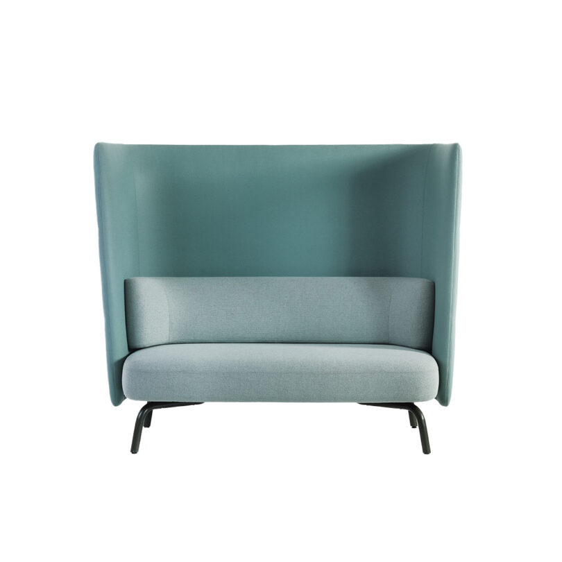 Two seater sofa with tall privacy screen on epoxy coated metal legs