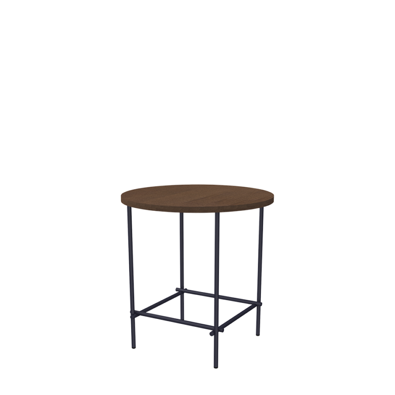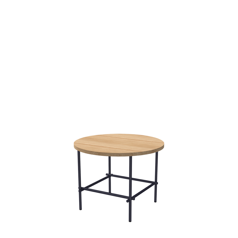 Side table with 4 leg frame. The frame is made of round steel tube legs and steel rod crossbars.