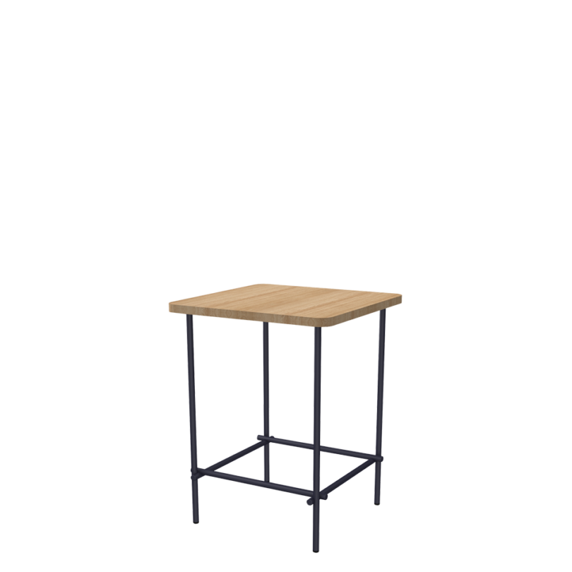 21″ table with Epoxy painted frame. 30″ x 30″ top in Ash veneer or Linoleum.