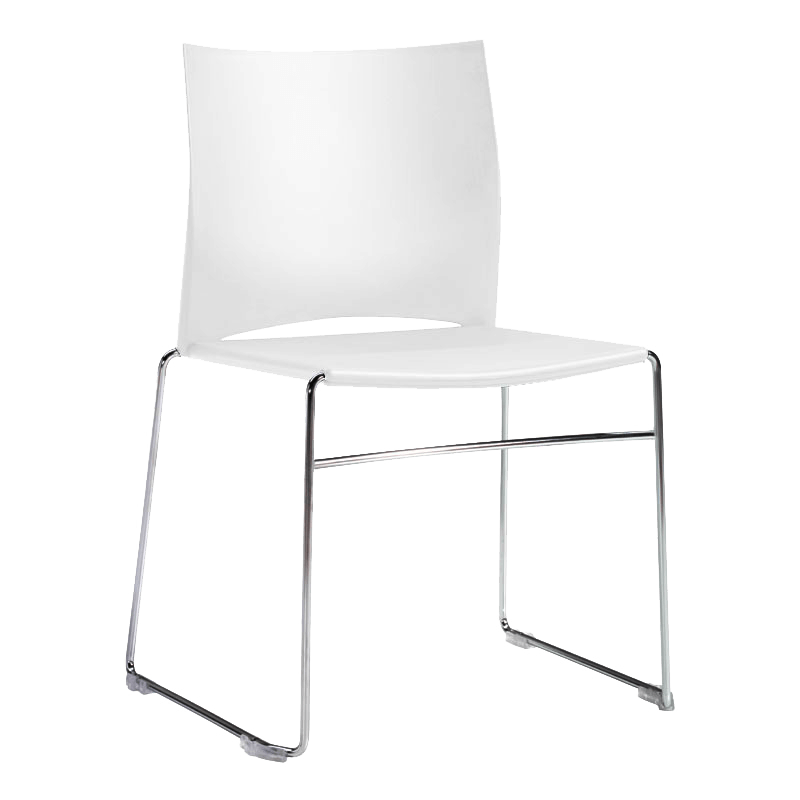 Side chair on sled base in chrome frame, seat in polypropylene. Stacks 15 on floor, 20 on trolley. MOQ 20 pieces