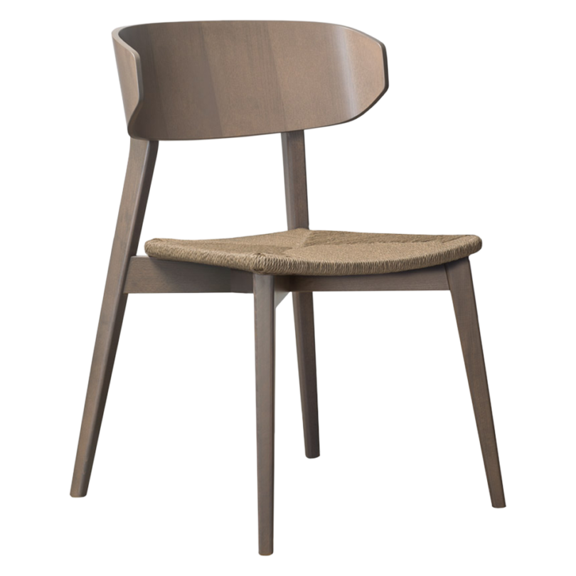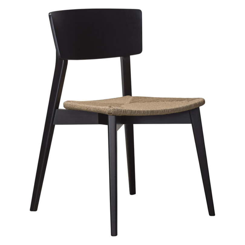 Chair with braided straw seat on a solid beech wood frame. Stackable up to five chairs.