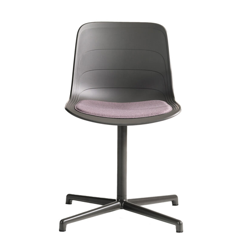 360° swivel chair with recycled polypropylene seat on a recycled aluminium 4 foot base with upholstered seat pad and optional casters.