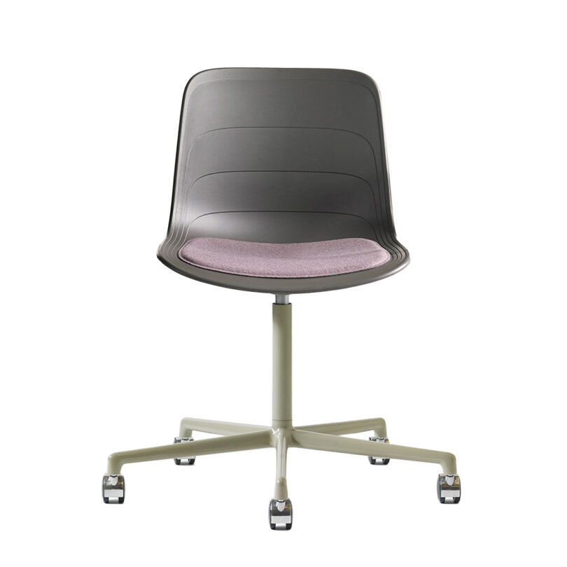 360° swivel chair with recycled polypropylene seat on a recycled aluminium 5 foot base with casters. With upholstered seat pad