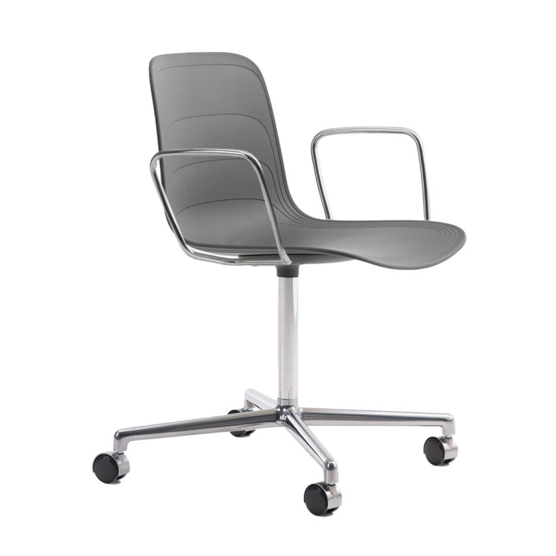 360° swivel armchair with recycled polypropylene seat on a recycled aluminium 5 foot base with casters