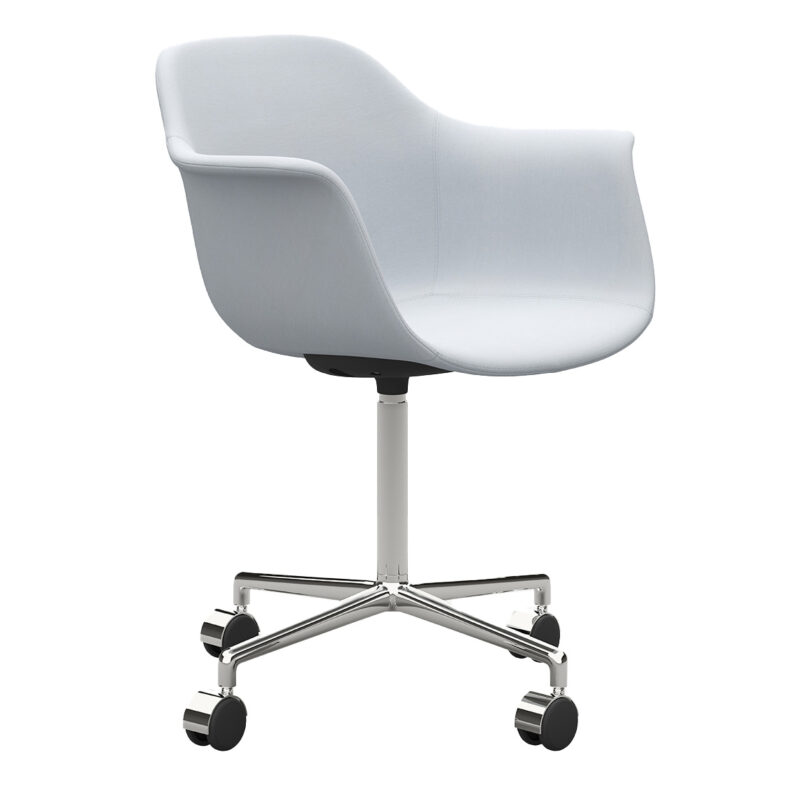 360° swivel armchair with fully upholstered recycled polypropylene seat on a recycled aluminium 5 foot base with casters