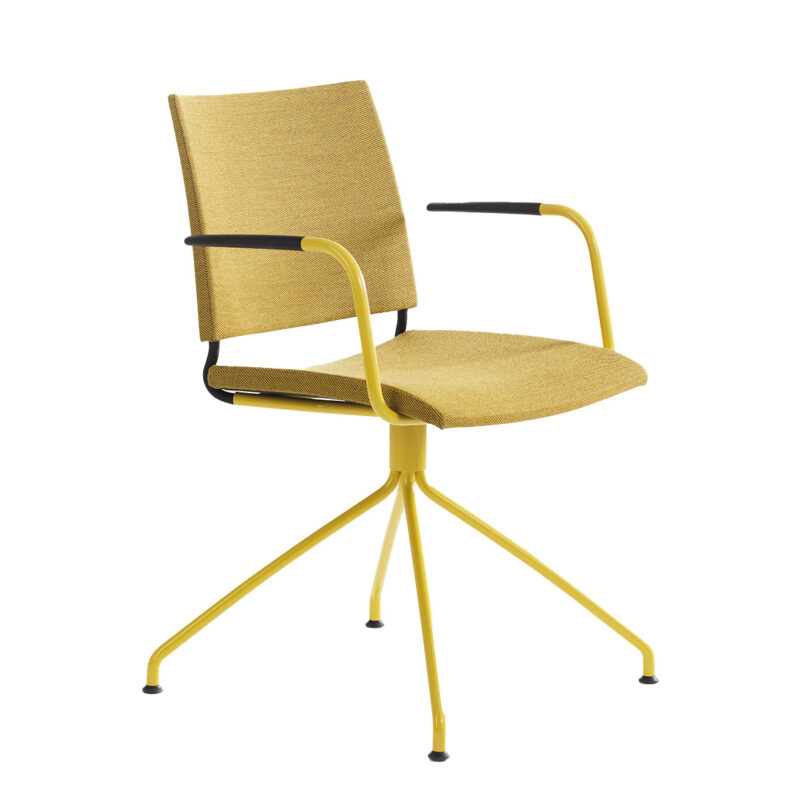 360° swivel armchair with recycled polypropylene seat on a recycled aluminium 4 foot base with upholstered seat pad and optional casters.
