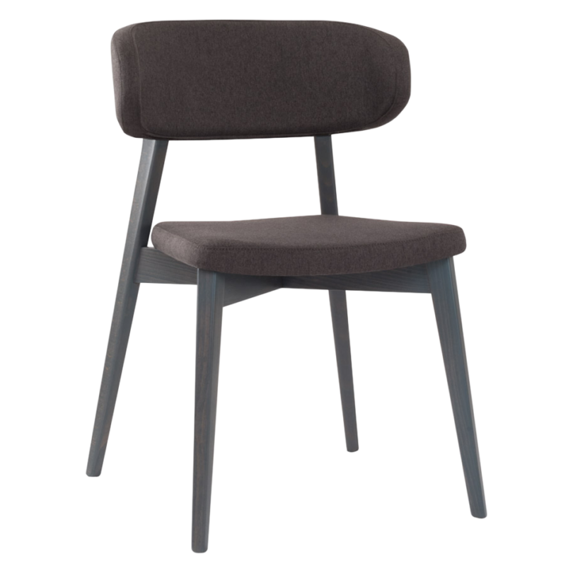 Chair with upholstered seat and back on a solid beech wood frame. Stackable up to five chairs.