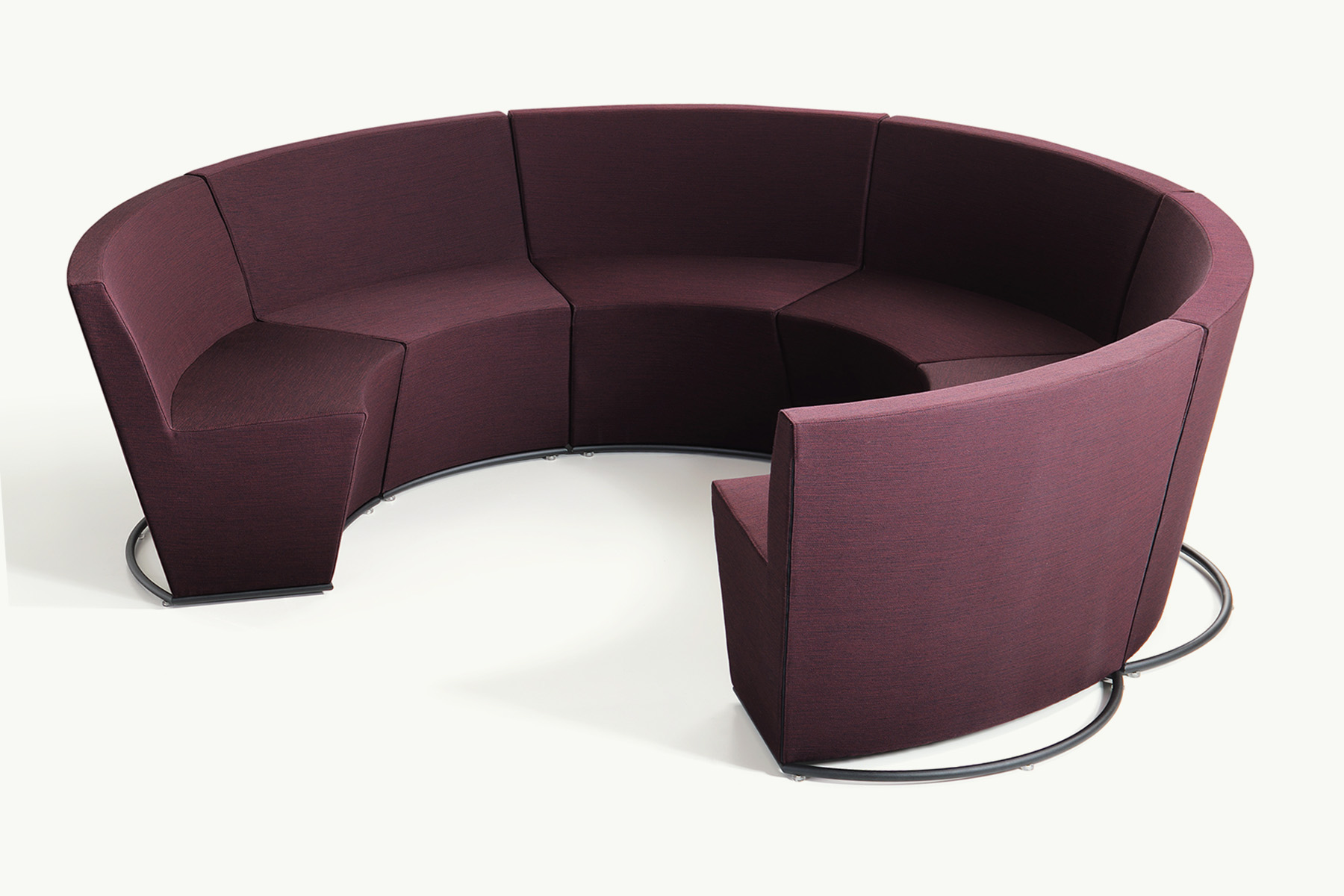 Modular sofa unit on powder coated or chromed Ø22 mm steel tubing sled base. Corner unit with upholstered seat and low back, and built-in magnetic linking device.