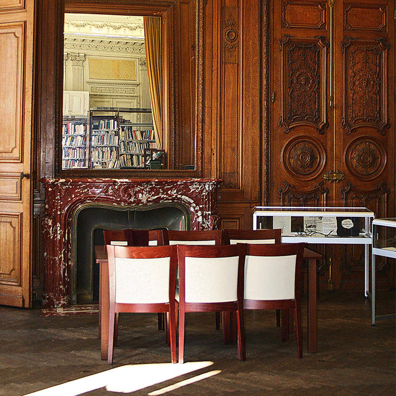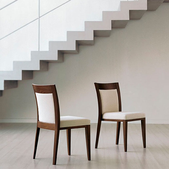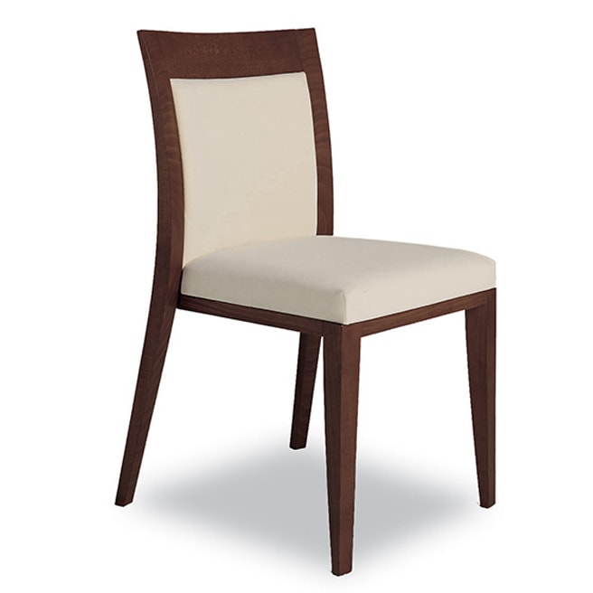 Upholstered side chair with full-length backrest on beech frame, stacks 8.