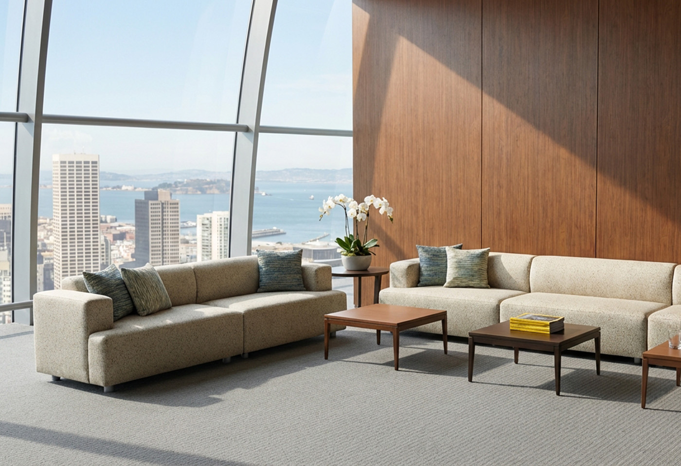 Two-seat unit with right-hand backrest in the Charlotte modular sofa series. Wooden frame. Made in America.