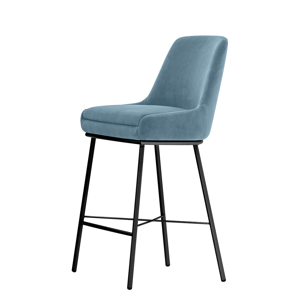 Fully upholstered counter stool on painted steel frame. Detachable seat.