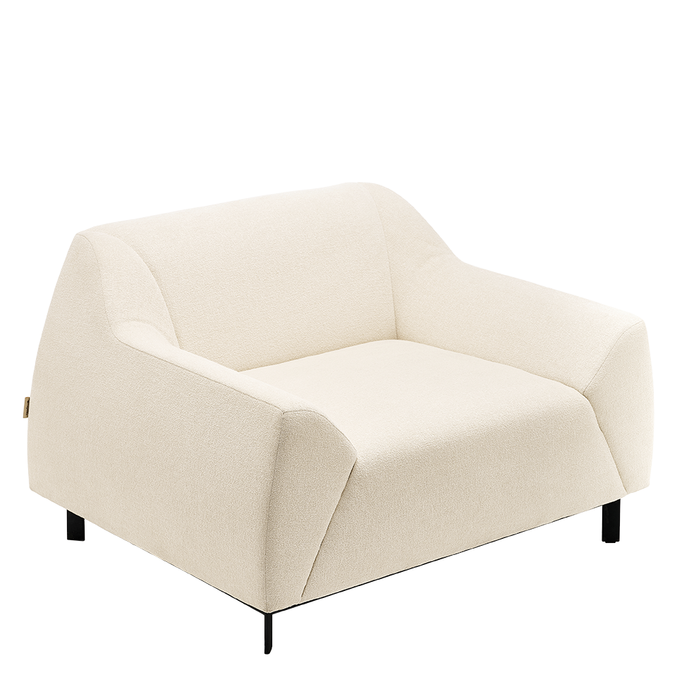 Fully upholstered lounge chair. Contemporary design with a rounded trapezoid silhouette.