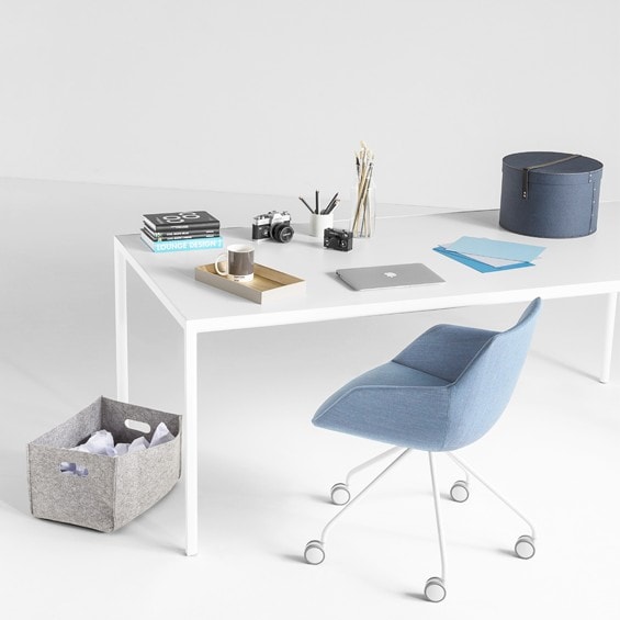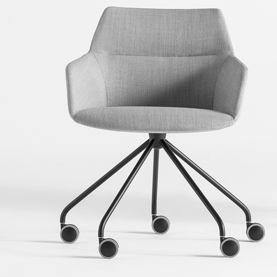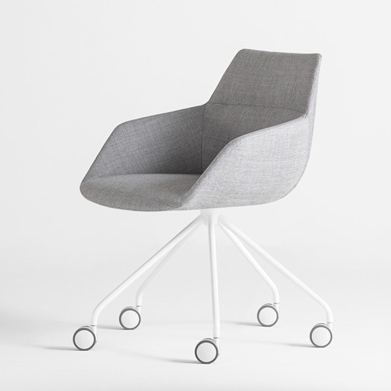Fully upholstered armchair on casters. 360° swivel seat with no return mechanism. Greenguard Gold-certified to protect indoor air quality.