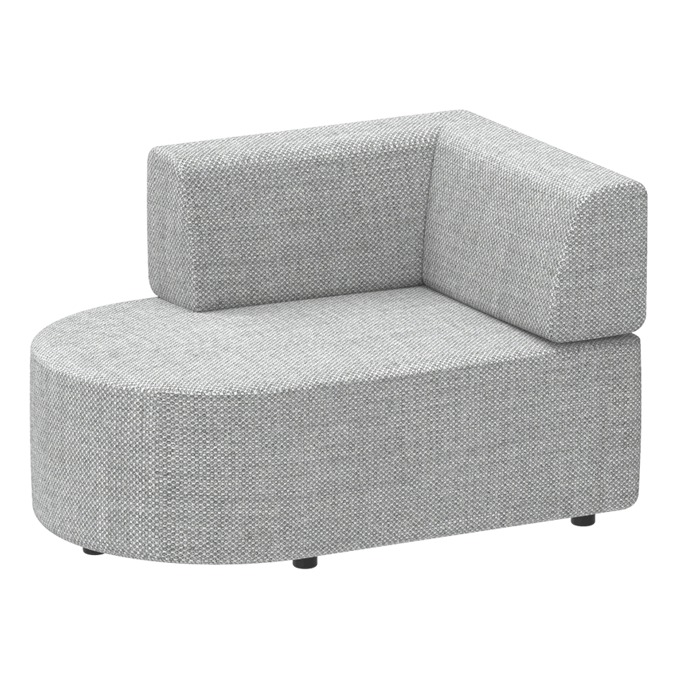 Upholstered seat base and corner backrest on an epoxy coated frame with circular end. (Right)