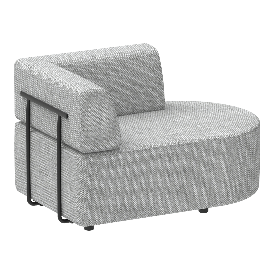 Upholstered seat base and corner backrest on an epoxy coated frame with circular end. (Left)