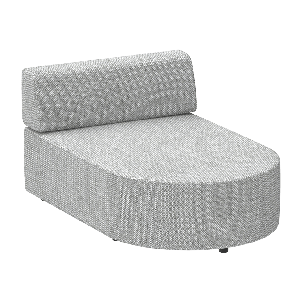 Upholstered seat base and backrest on an epoxy coated frame with circular end.