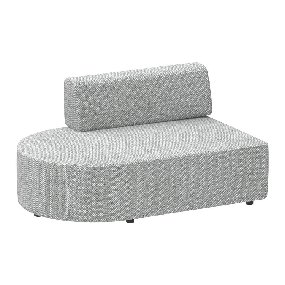 Upholstered seat base and backrest on a black base and epoxy coated frame with circular end. (Right)