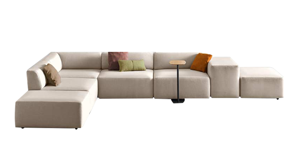 ENTROPY is a modular sofa system that works as a play of geometries that allow for countless compositions to be formed and a total adaptation to the most diverse spaces. The pictured configuration uses three seat units with backrest, one corner unit, and a mix of ottomans and backless seats. Please contact one of our representatives to discover all of Entropy’s possible configurations.