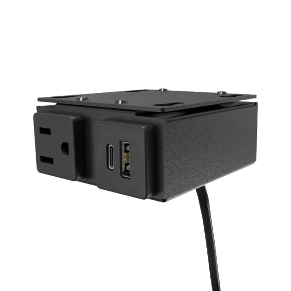 Power box with 1 power outlet, 1 USB-A & 1 USB-C. Suitable for Escalas range. Escalas mounting plate included