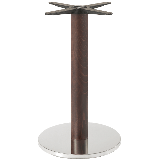 Table base at dining height with top fixing bracket in cast iron. Base in steel and column in beechwood. Includes hidden counterweight and adjustable glides.