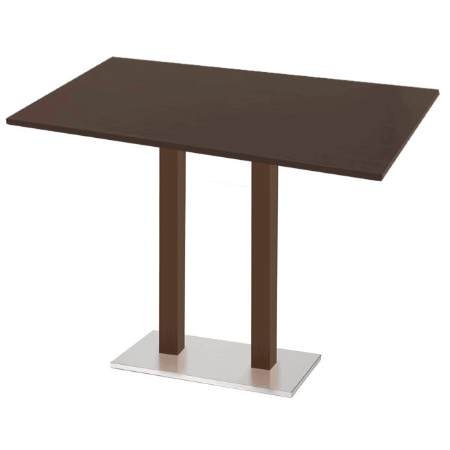 Table base at bar height with top fixing bracket in cast iron. Base and 2 columns in beechwood. Includes hidden counterweight and adjustable glides.