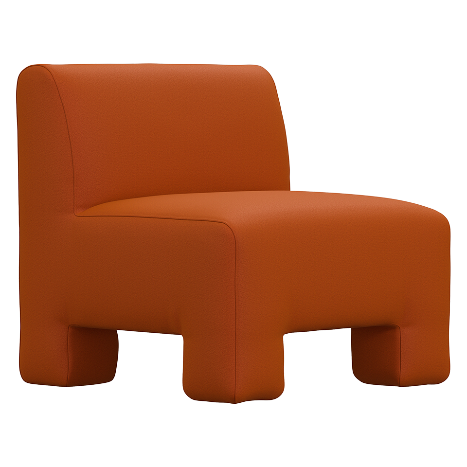 A single seat with backrest in the Geofanti modular seating series. Can be used in a sectional sofa or as a standalone chair. Removable upholstery for easy cleaning and changing.