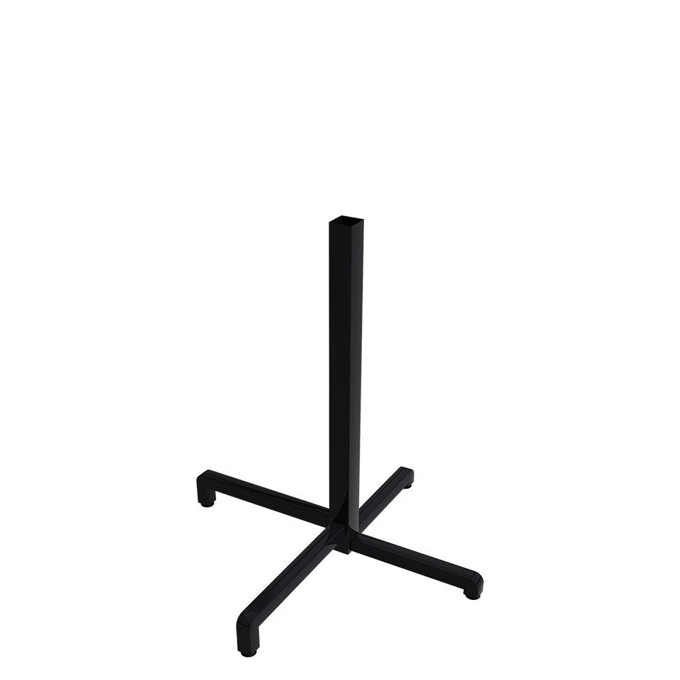 Outdoor dining table base with folding mechanism for easy storage. Compatible with the Hadley round and square tabletops.